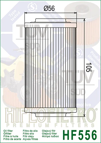 HIFLOFILTRO HF556 je vyrobený z kvalitných materiálov, ktoré zabezpečujú vysokú účinnosť filtrácie a zároveň spĺňajú prísne štandardy výrobcov originálnych náhradných dielov. Jeho použitie je ideálne pre tých, ktorí požadujú spoľahlivosť, jednoduchú výmenu a maximálnu ochranu motora.